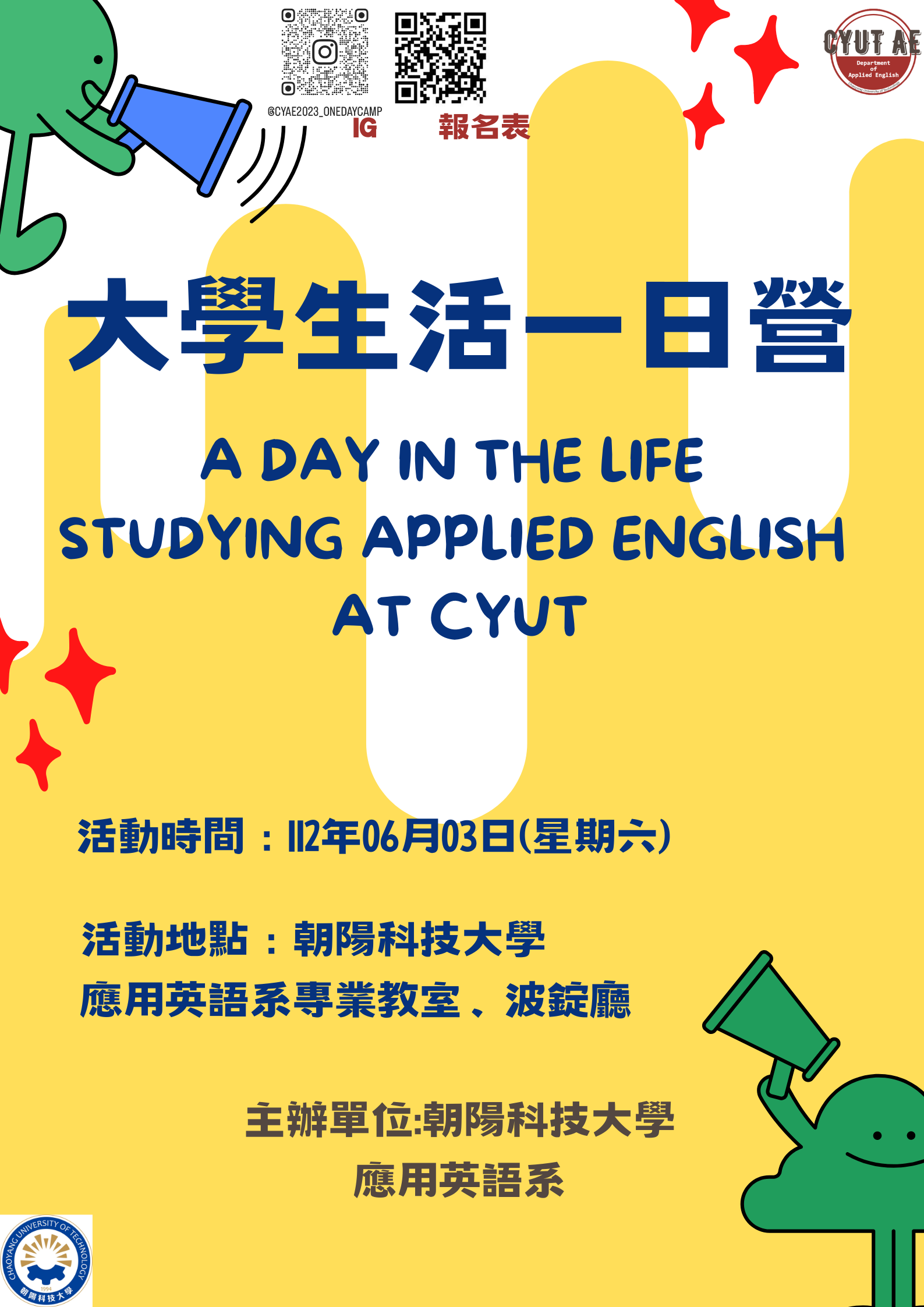 五、公告錄取名單:於112年5月29日(星期一)公告於本校應 用英語系網頁最新消息,網址:http://aecyut.cyut.edu. tw/。