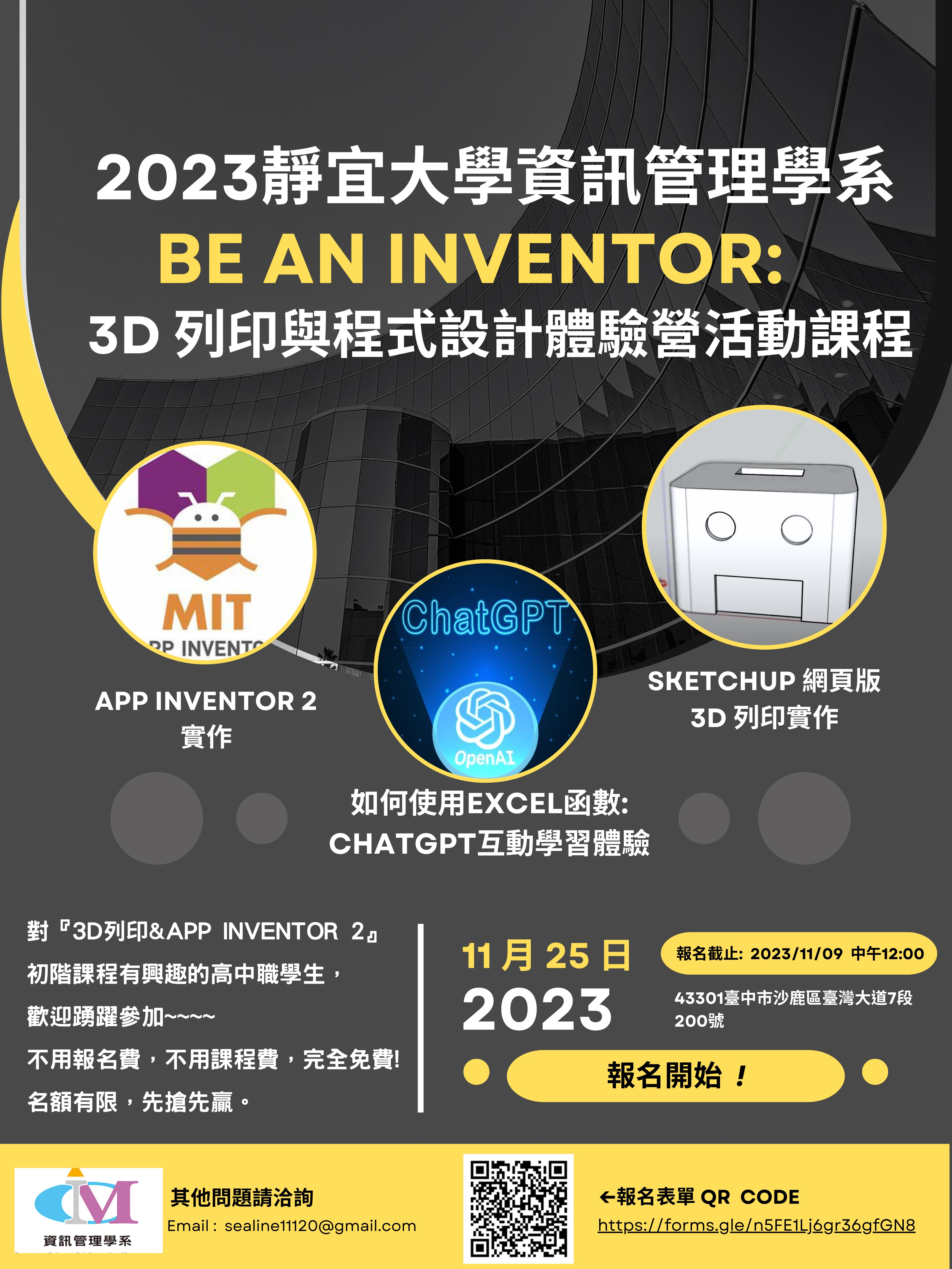二、對象:對「3D列印及App Inventor 2程式設計」有興趣之高中職學生,名額60人。