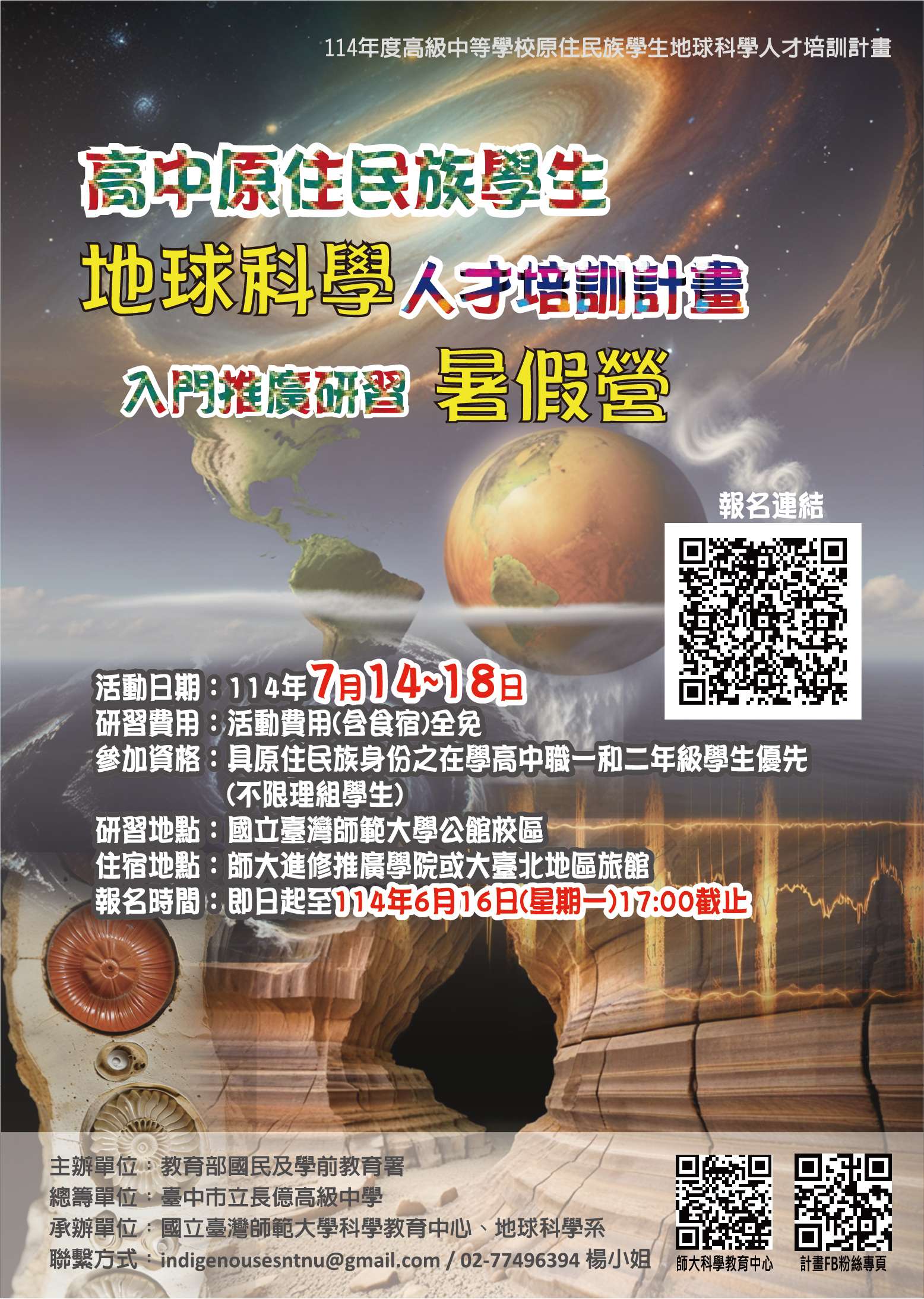 四、本研習參加對象以具原住民族身份之在學高中職一和二年級學生優先(不限理組學生)。