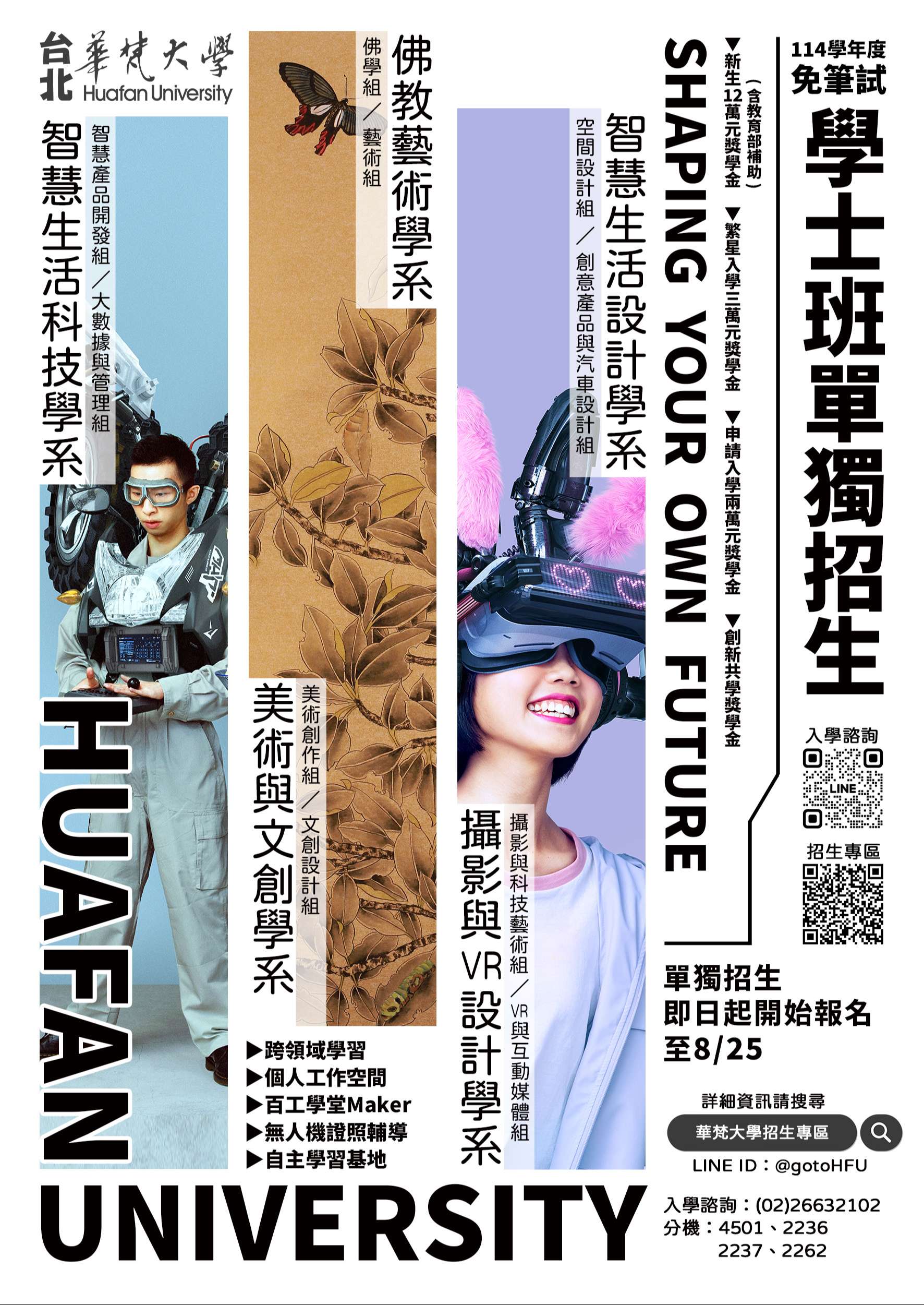 報名自即日起至114年8月25日止,詳情請至本校官網「招
