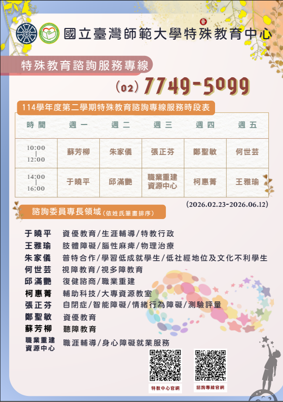 該中心網站另提供特教期刊及叢書下載,歡迎多加利用,詳情請見中心網站(web.spc.ntnu.edu. tw)。